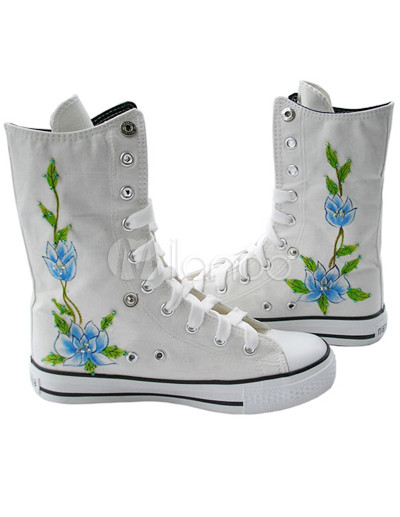 White Handmade Beading High Cut Canvas Womens Painted Shoes Milanoo.